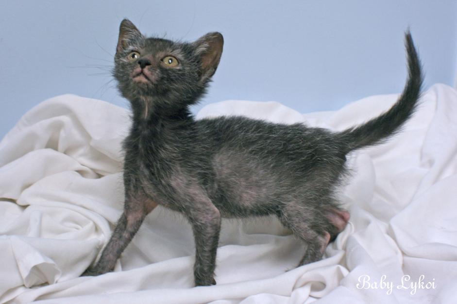 1. Ликои появились случайно, когда группа американских заводчиков работала над разведением голых пород кошек. В результате природной мутации котята родились с залысинами на носу, вокруг глаз, на ушах и мордочке, покрытые редкой черно-серой шерстью, сквозь которую тут и там проглядывали складки тонкой кожи.