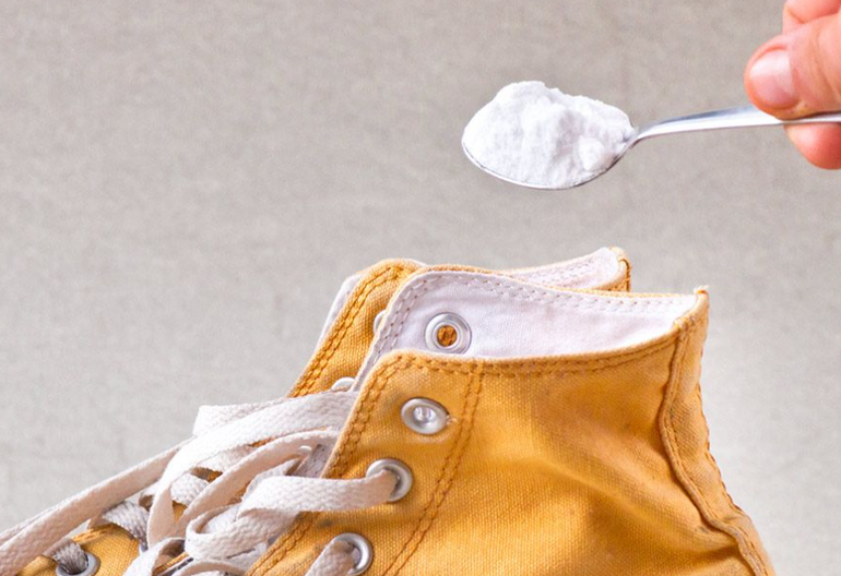 1. Насыпьте небольшое количество соли в каждый ботинок или кроссовок.