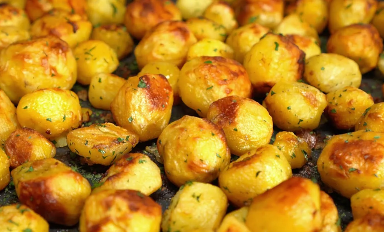 - Разогреть духовку до 190°С и отправить картофель в духовку на 20 минут, затем перевернуть картофель и вновь отправить в духовку на 15 минут, снова перевернуть картофель и запекать еще 10 минут.