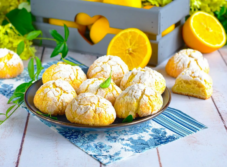 Отправьте печенье в разогретую до 180 °C духовку на 18–20 минут. Готовое печенье поднимется, покроется нежными трещинками и приобретёт красивый золотисто-оранжевый оттенок.