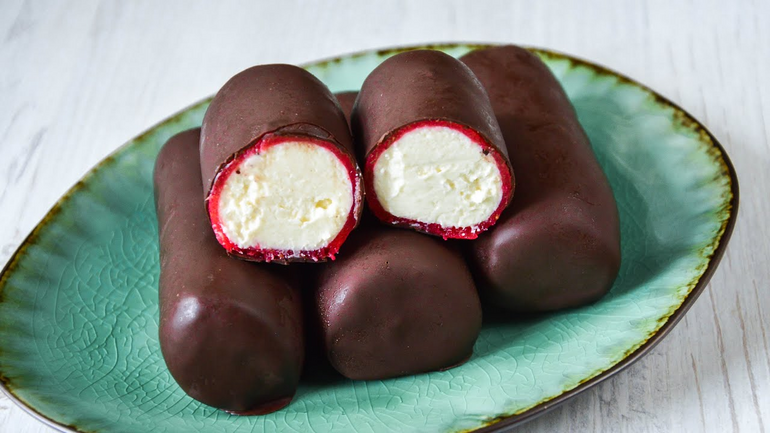 В результате получается десерт с хрустящей шоколадной оболочкой, мягкой творожной текстурой и ярким ягодным вкусом, подходящий как для домашнего чаепития, так и для подачи к праздничному столу.