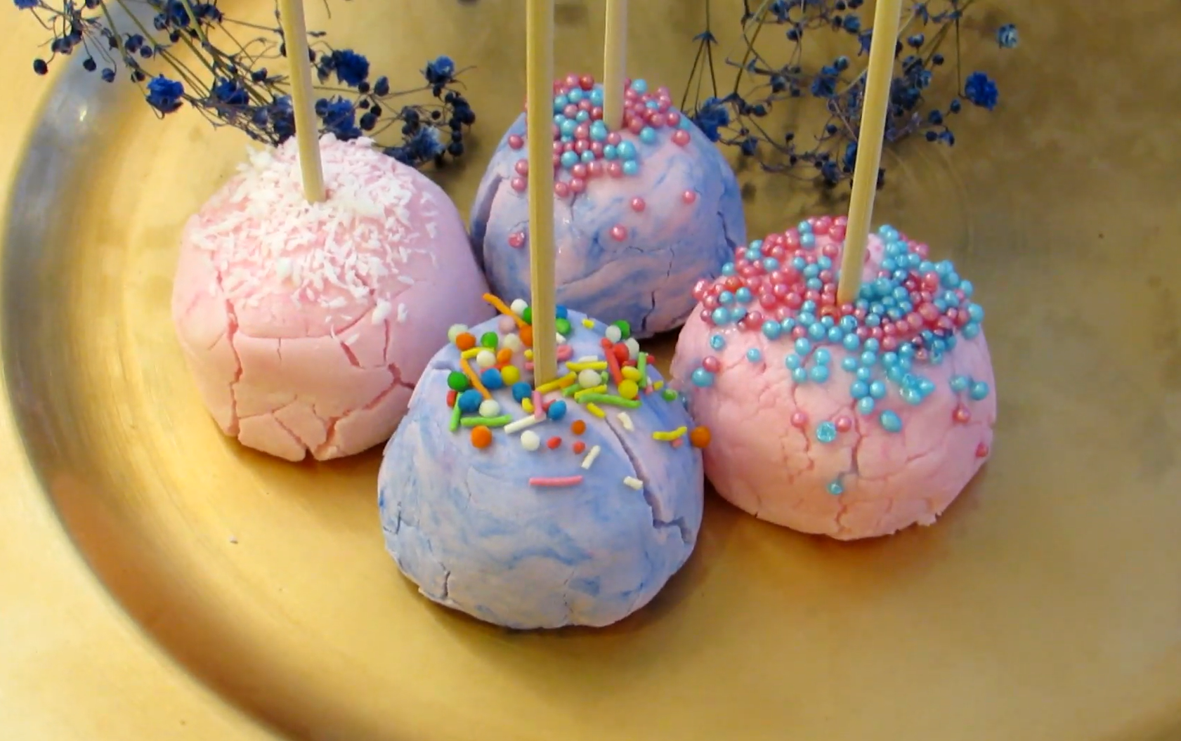 По желанию в шарики можно вставить палочки — так они действительно будут напоминать кейкпопсы. Но и без них изделия выглядят эффектно и аккуратно.