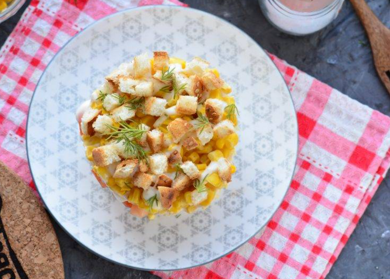 Перед самой подачей сухарики выкладывают сверху на салат — именно они создают ту самую «медвежью шубу» и аппетитный хруст.
