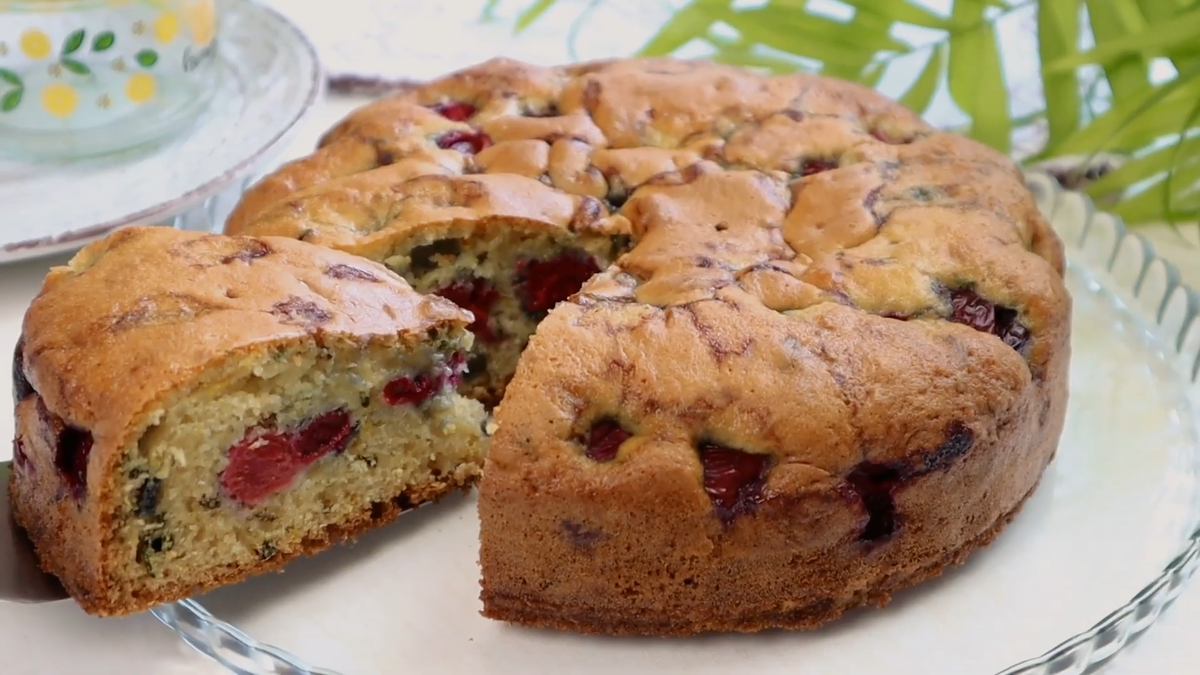 Полностью остудите пирог, достаньте из формы и подавайте к чаю. Нежный, пышный и душистый десерт с нотками лимона, вишни и мяты невозможно забыть.