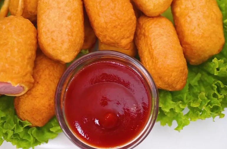 - Сосиски в кляре подавать горячими с кетчупом или любимым соусом.