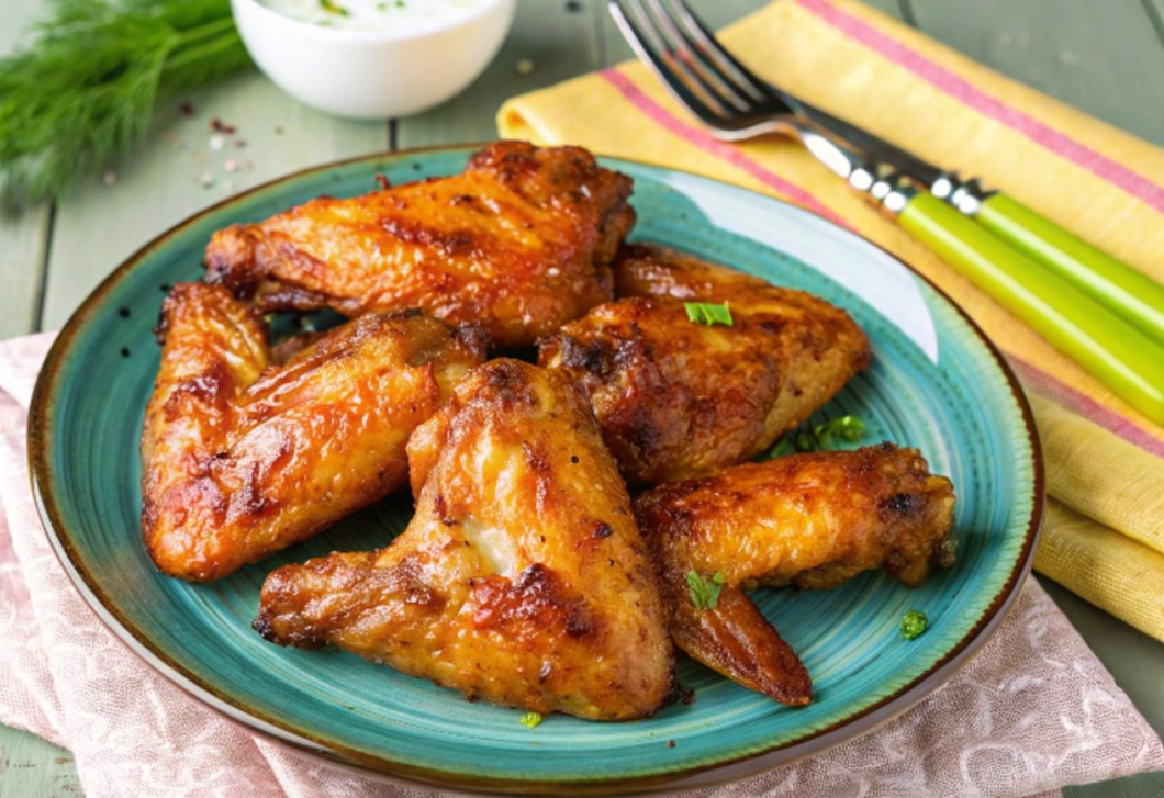 - Проверьте готовность курицы термометром 72°С или проткните ножом у кости, выделившийся сок должен быть прозрачным, это означает, что крылышки готовы.