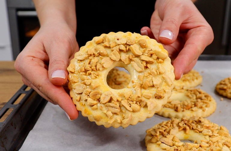 Помните те самые песочные кольца из школьного буфета? Рассыпчатое золотистое тесто, которое буквально тает во рту, и много-много жареного арахиса... Сегодня мы приготовим их дома, но сделаем это даже лучше, чем в детстве. Рецепт идеального песочного теста, которое не ломается при формовке, но остаётся невероятно нежным.