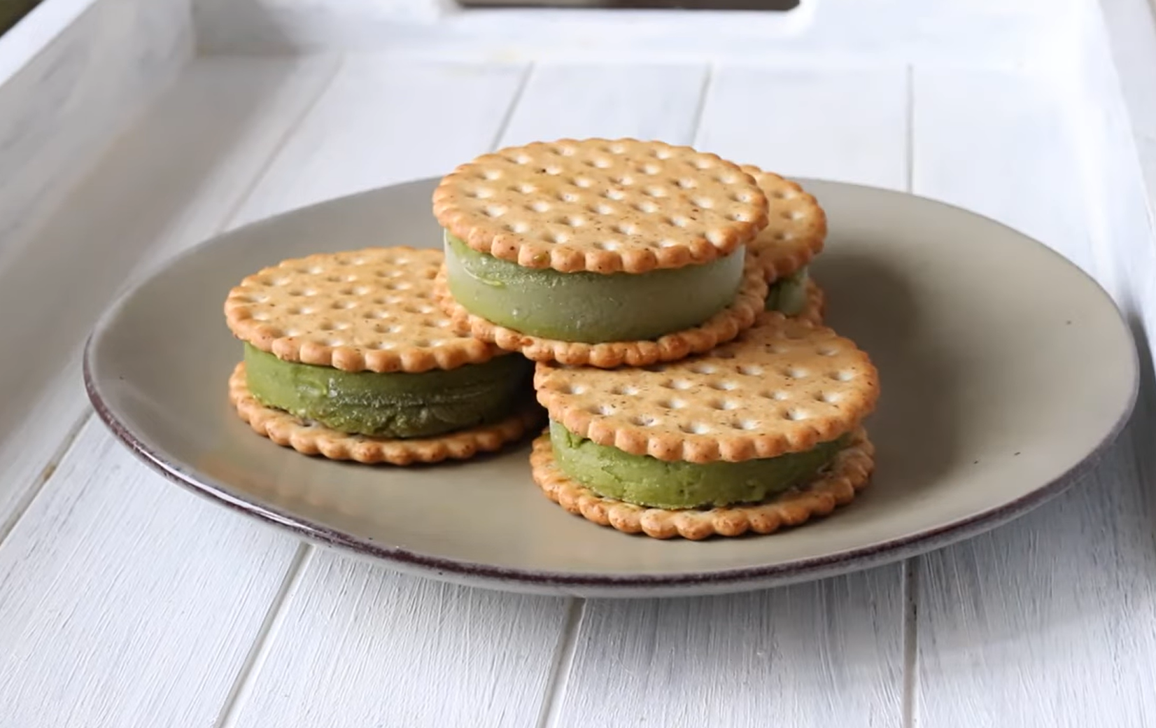 Каждый кусочек мороженого зажмите между двумя печеньями — получатся аккуратные сэндвичи.