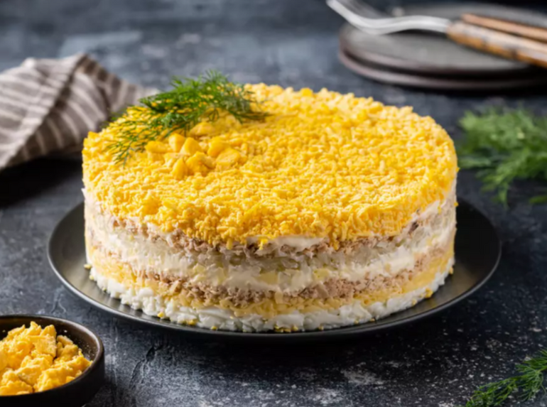 Если вам кажется, что мимоза — это давно знакомое блюдо, попробуйте этот вариант, и вы измените своё мнение. В этом рецепте всё привычное обретает новые оттенки вкуса — благодаря легкому, воздушному соусу и неожиданному ингредиенту.
